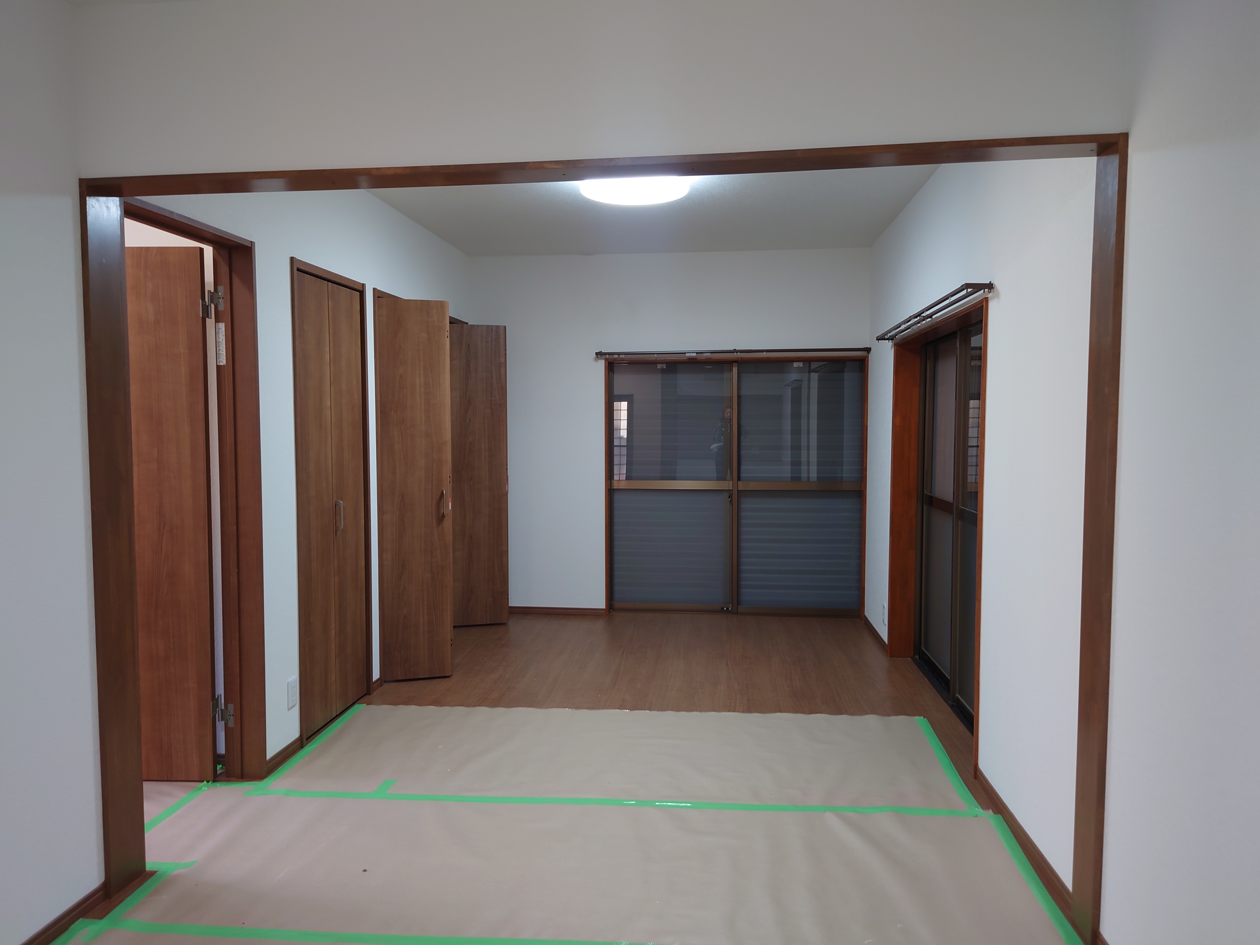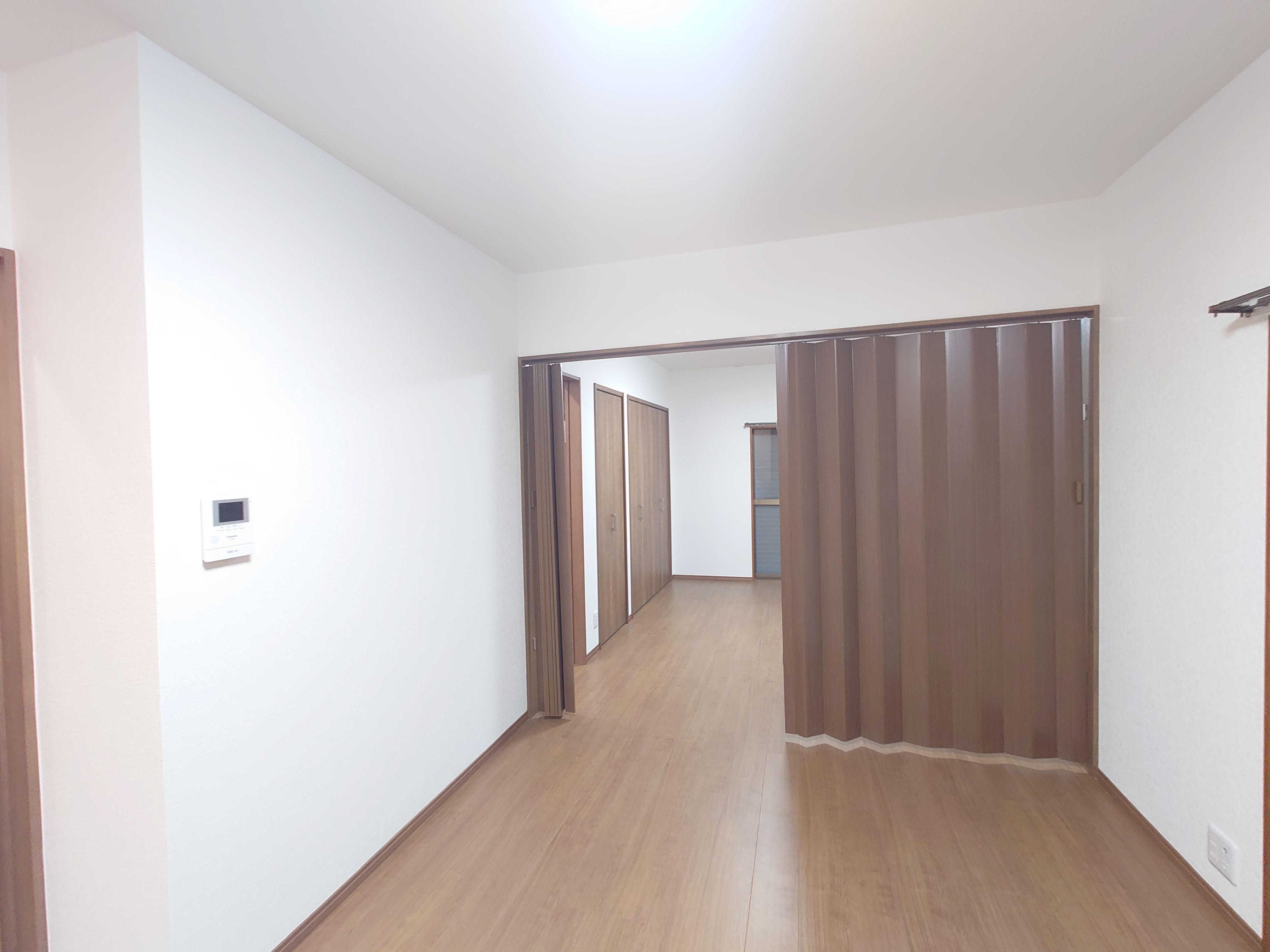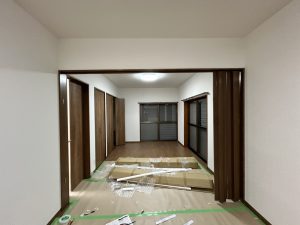 アコーディオンカーテンを設置して、LDKを2部屋に仕切ります。