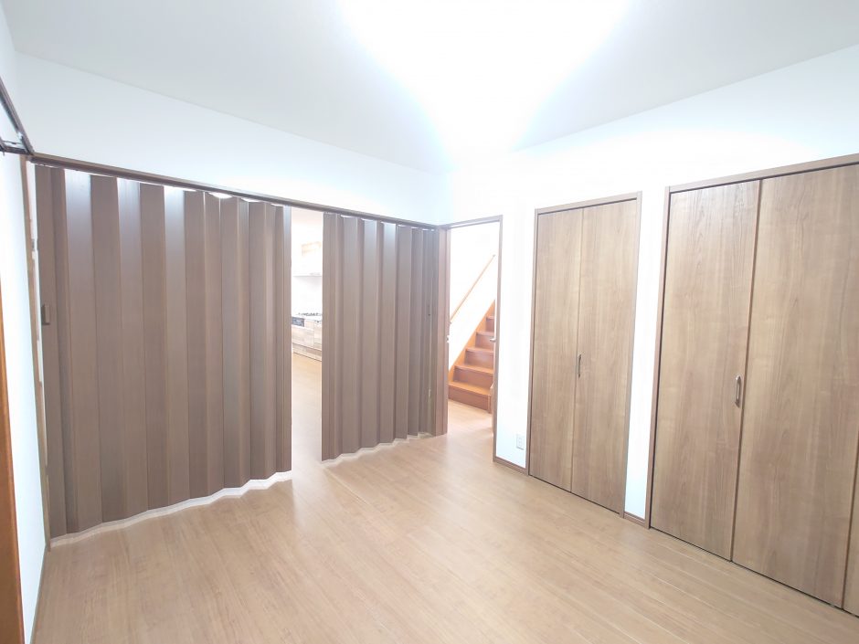 壁を作るのではなく、アコーディオンカーテンで仕切ることで必要に応じて開け閉めができ、また費用もグンと抑えることができます。