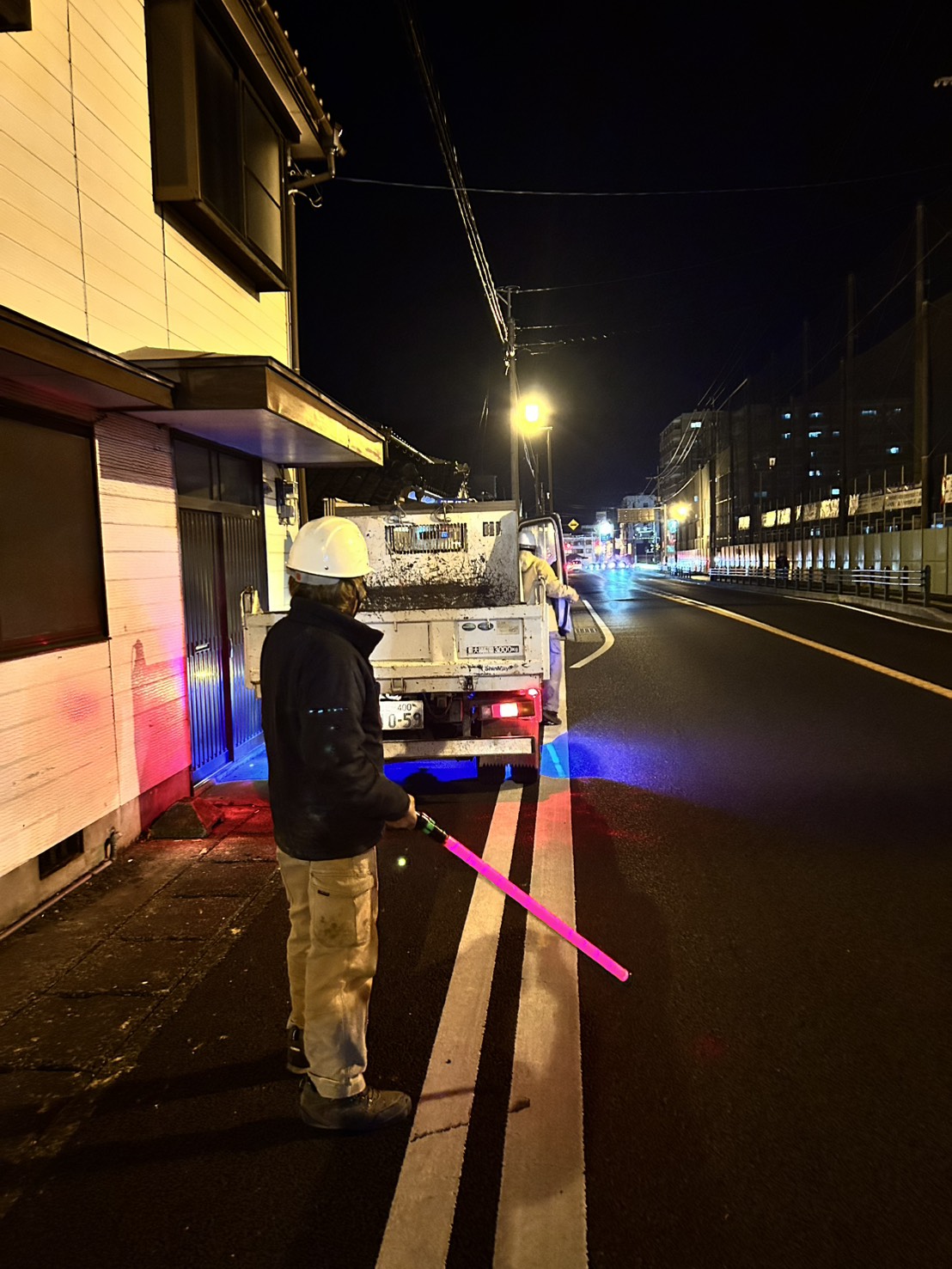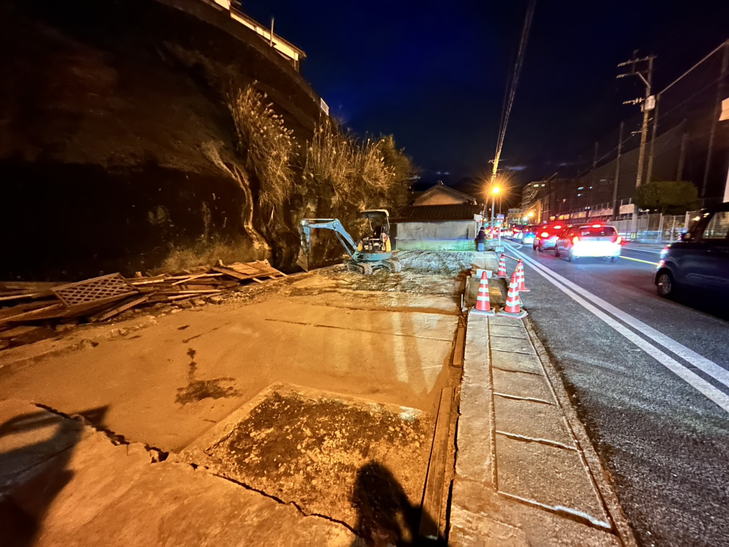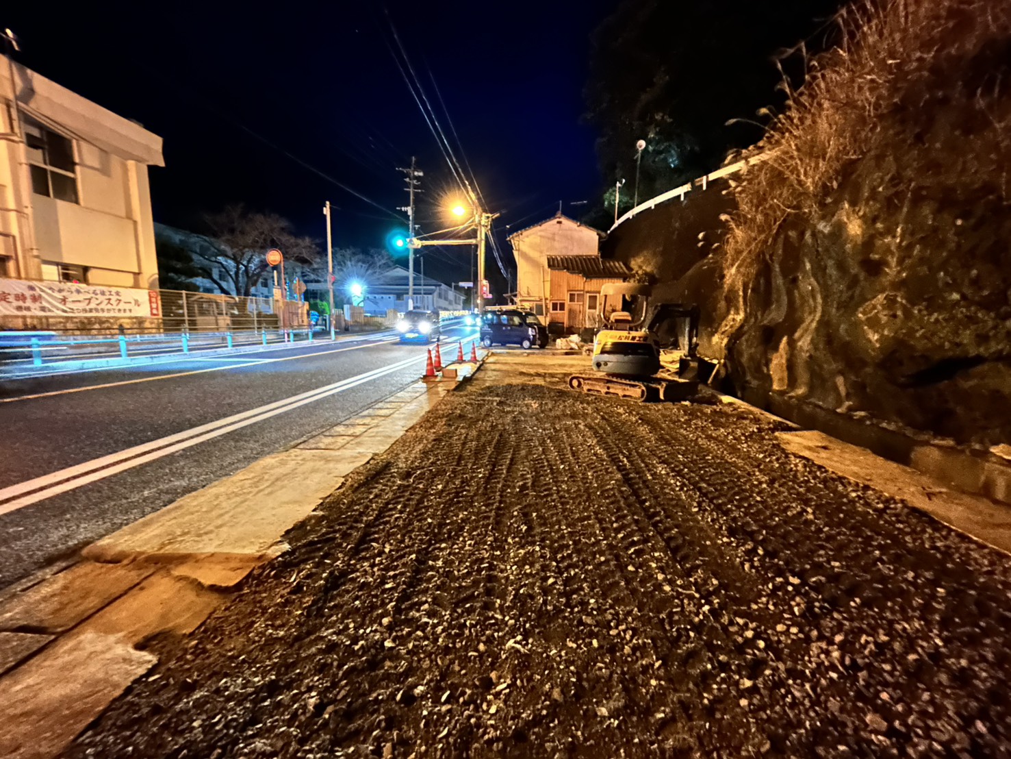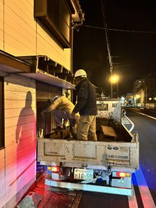 ひさしなど、道路際の解体は夜に行いました。