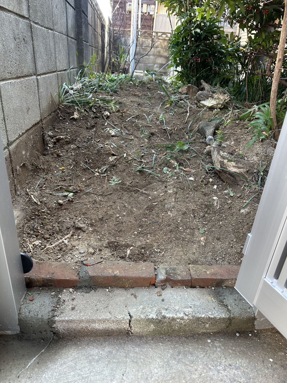 裏口は庭木を伐根してここから出入りできるように整地します。