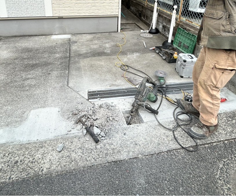 今回は片持ちタイプのカーポートなので、柱用の穴を2か所掘ります。