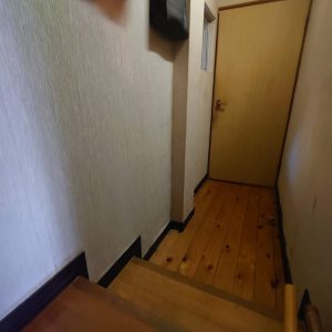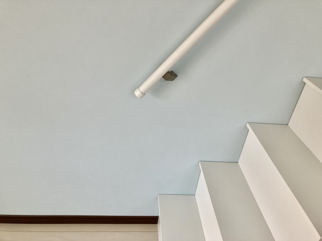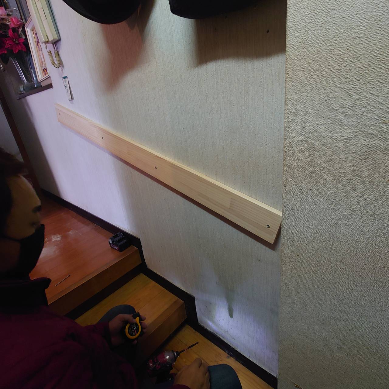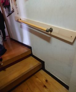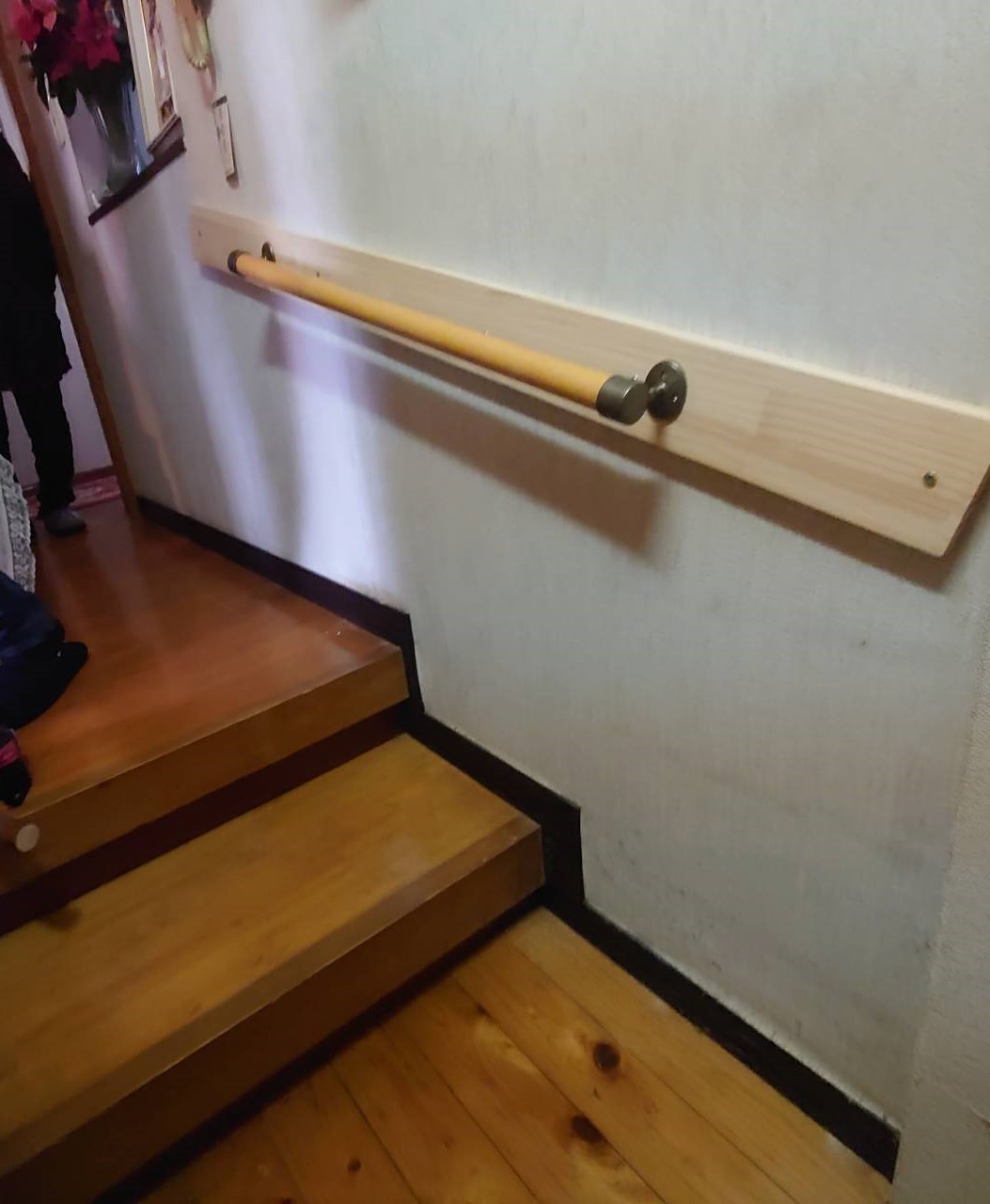 手すりの高さは段鼻から80センチくらいが一般的ですが、今回は使用される方の身長に合わせ、75センチの位置に取り付けました。